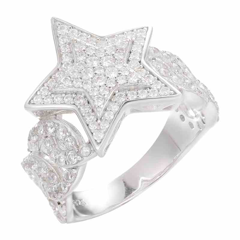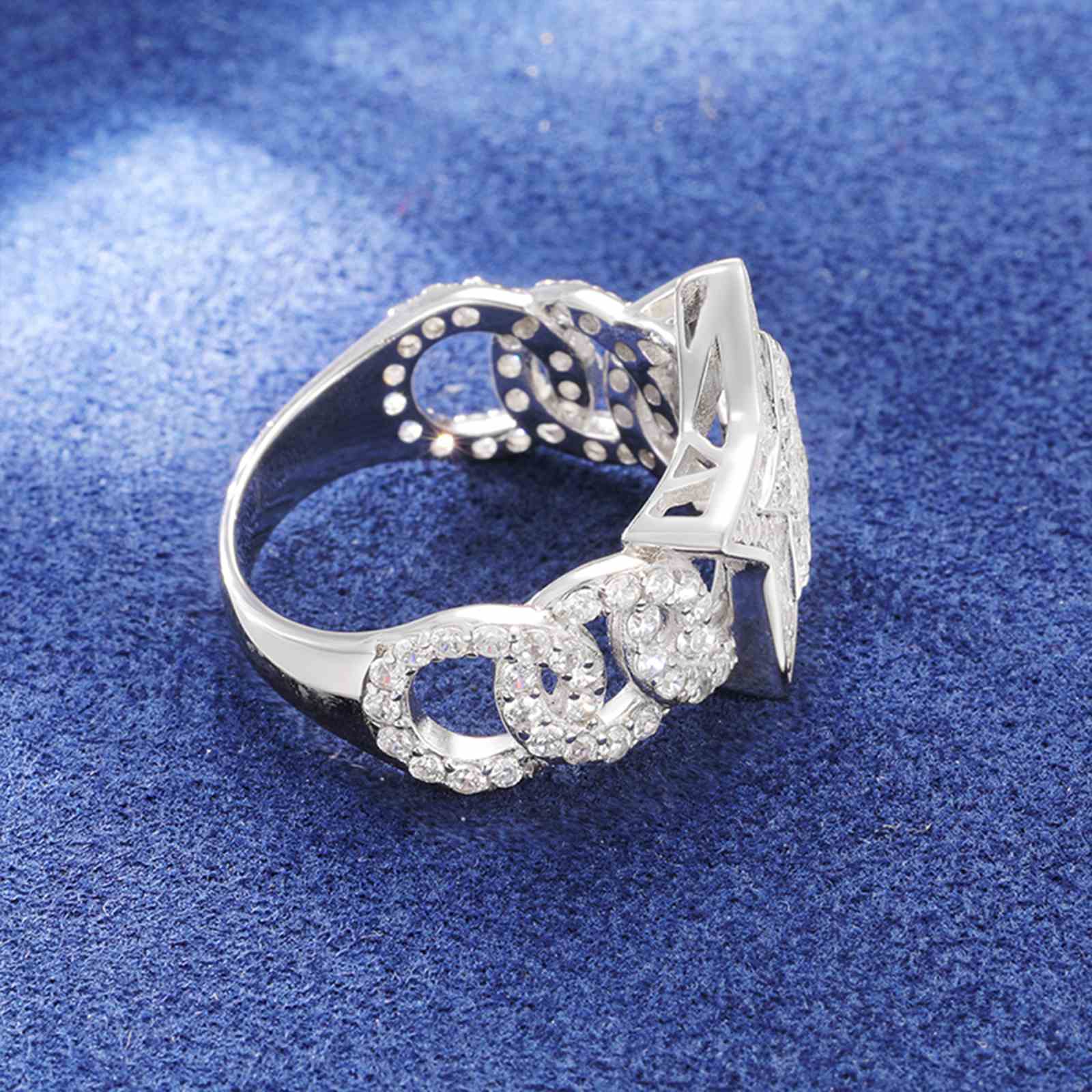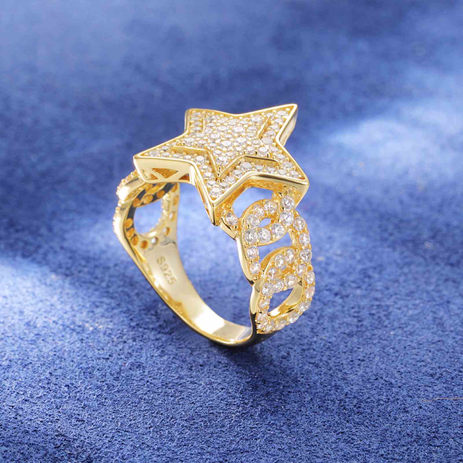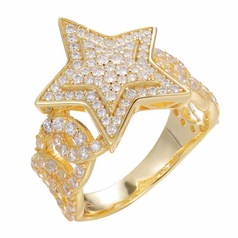 S925 Moissanite Cuban Link Side Star Ring