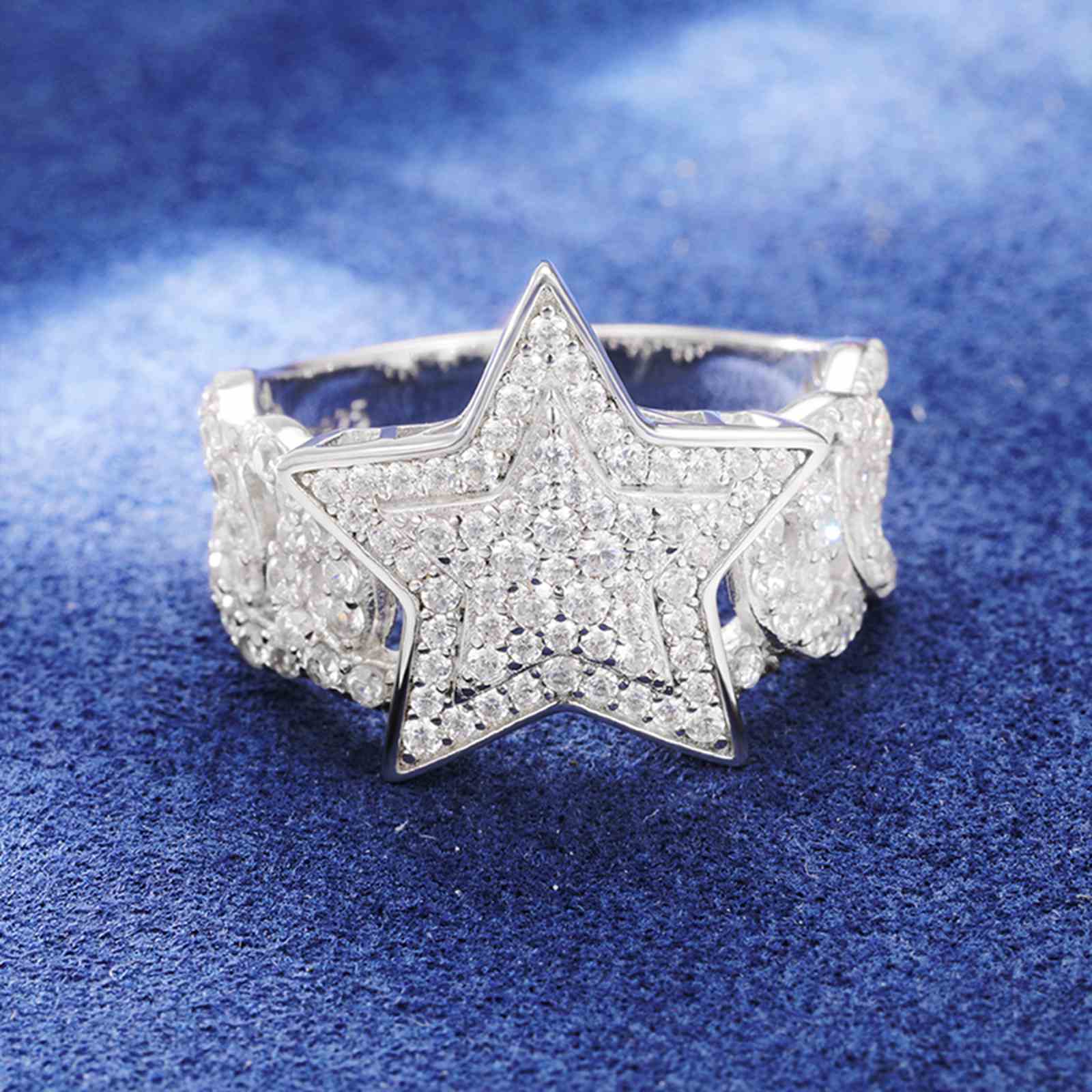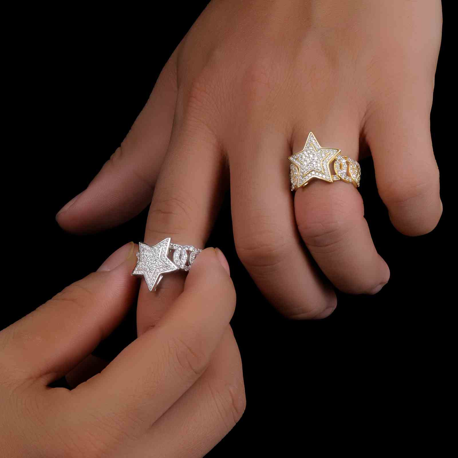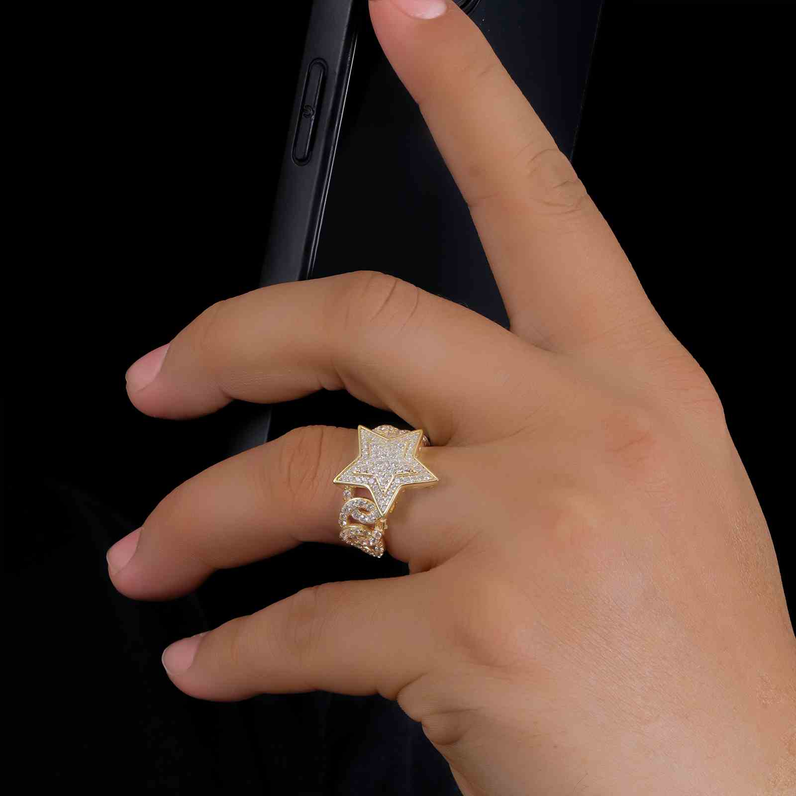 S925 Moissanite Cuban Link Side Star Ring