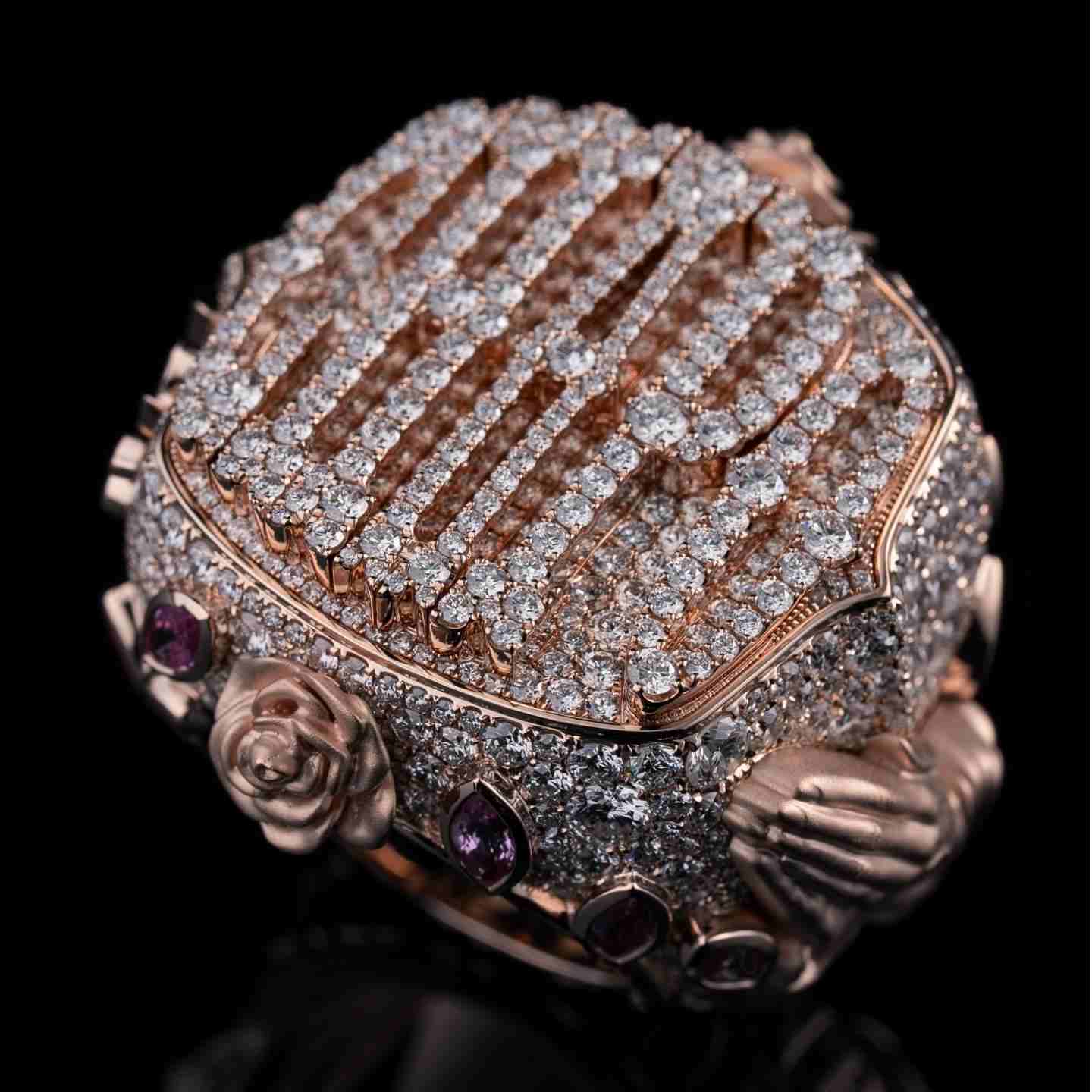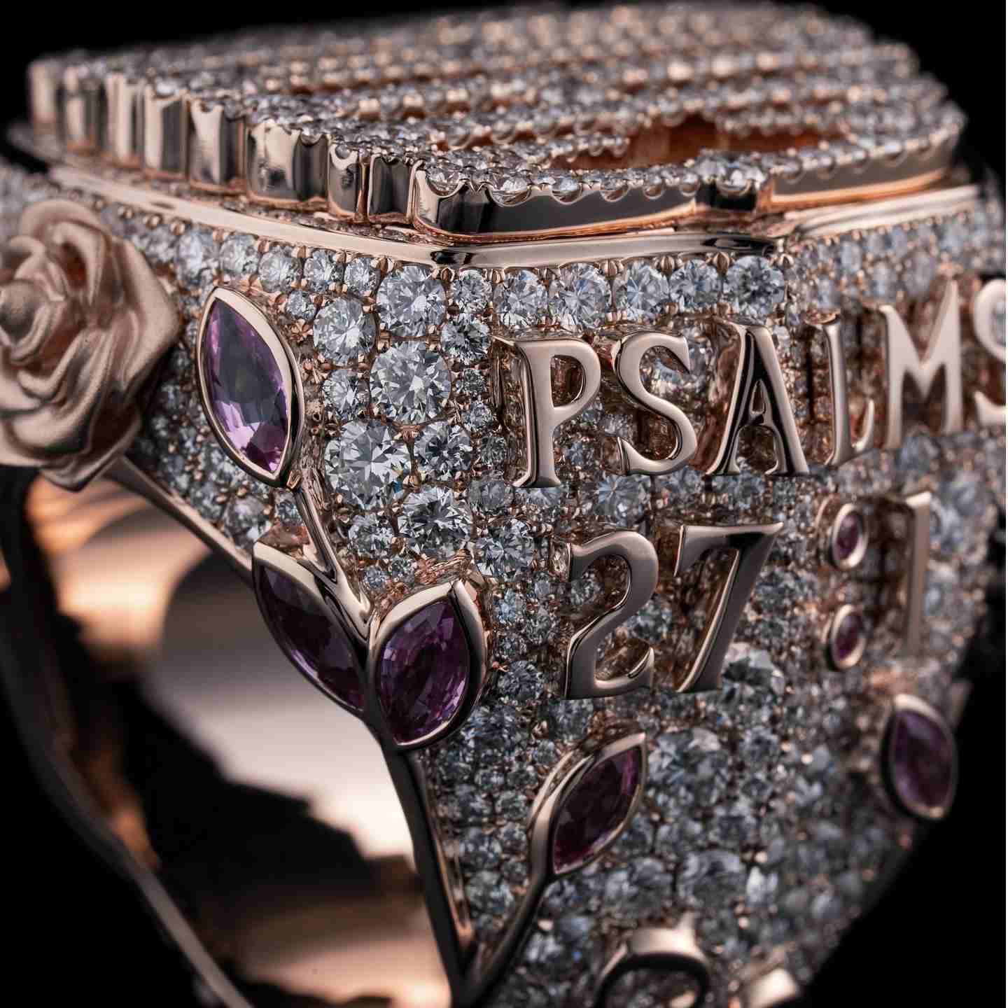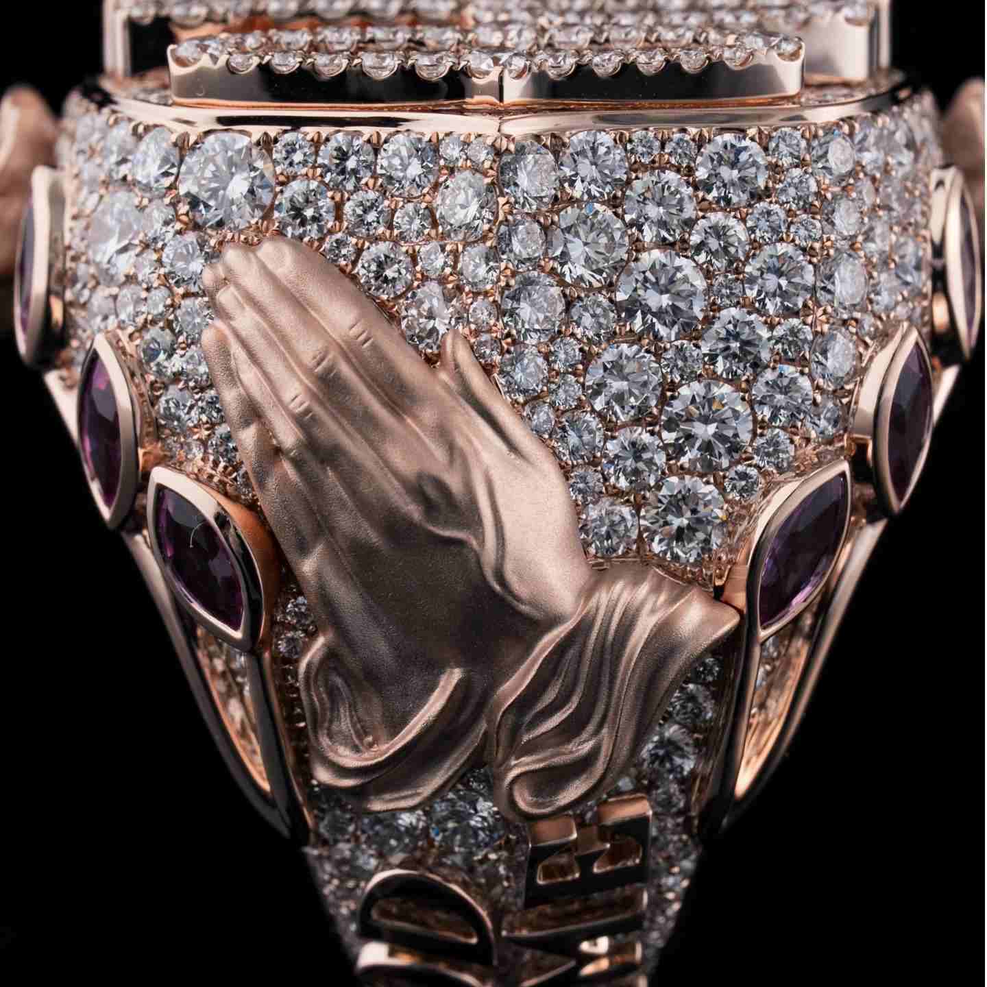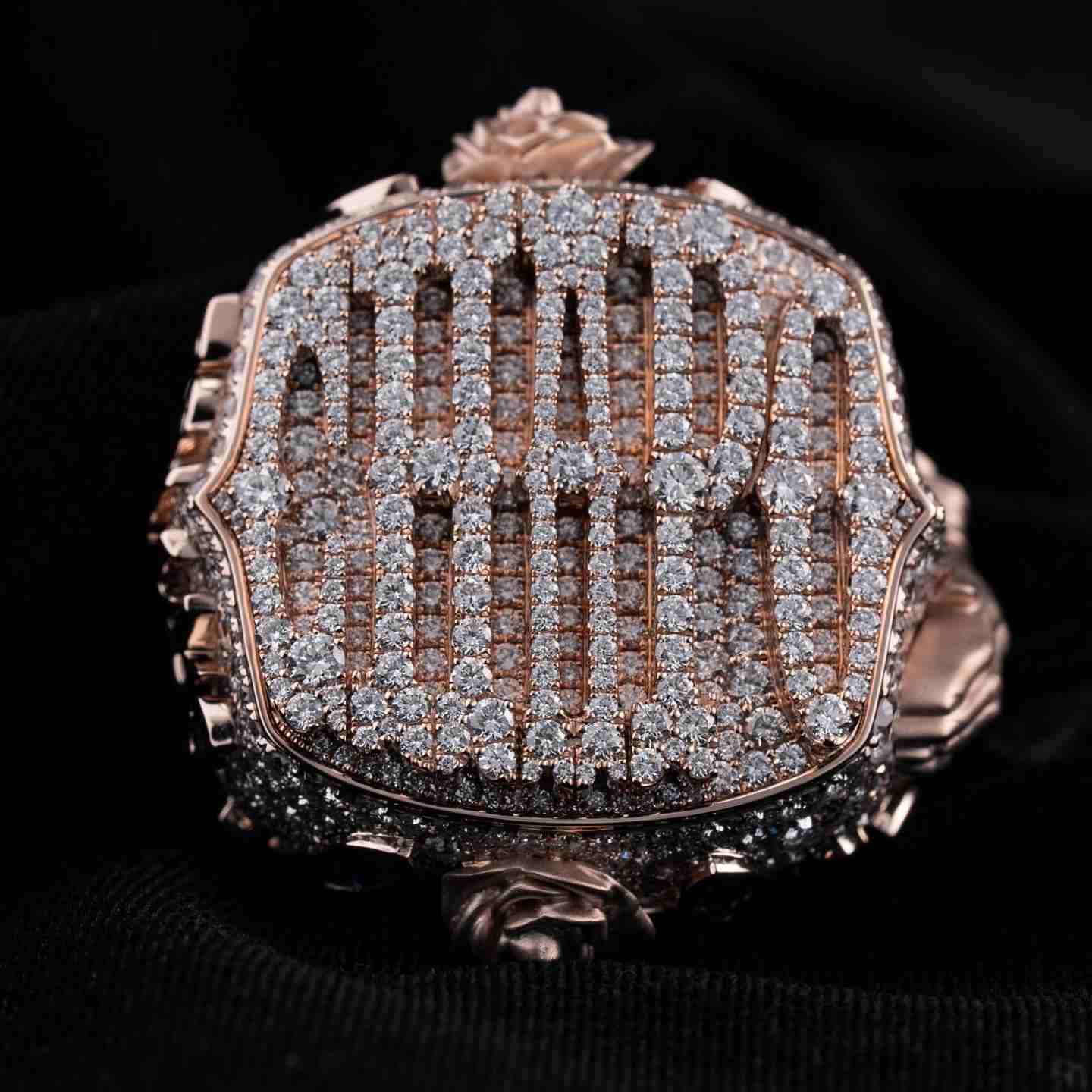 S925 Moissanite Custom Name Champion Ring With Rose Pray Hand Pattern