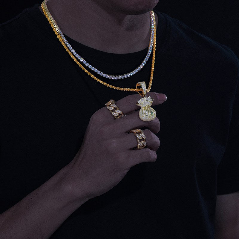 Stack your style and flex your wealth with the Noctari S925 Moissanite Dollar Money Bag Pendant. Crafted from genuine 925... Read more