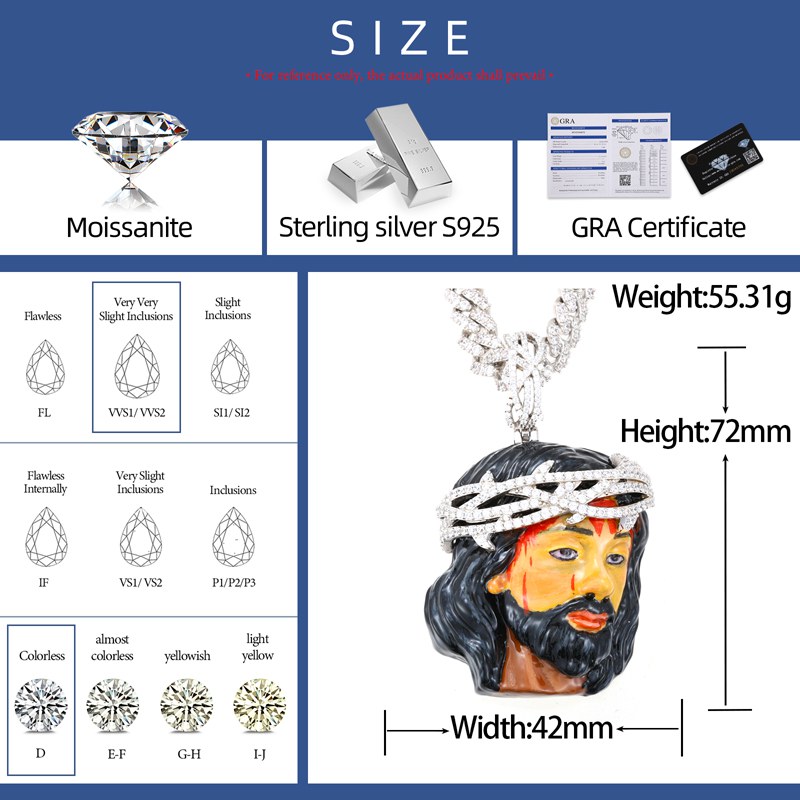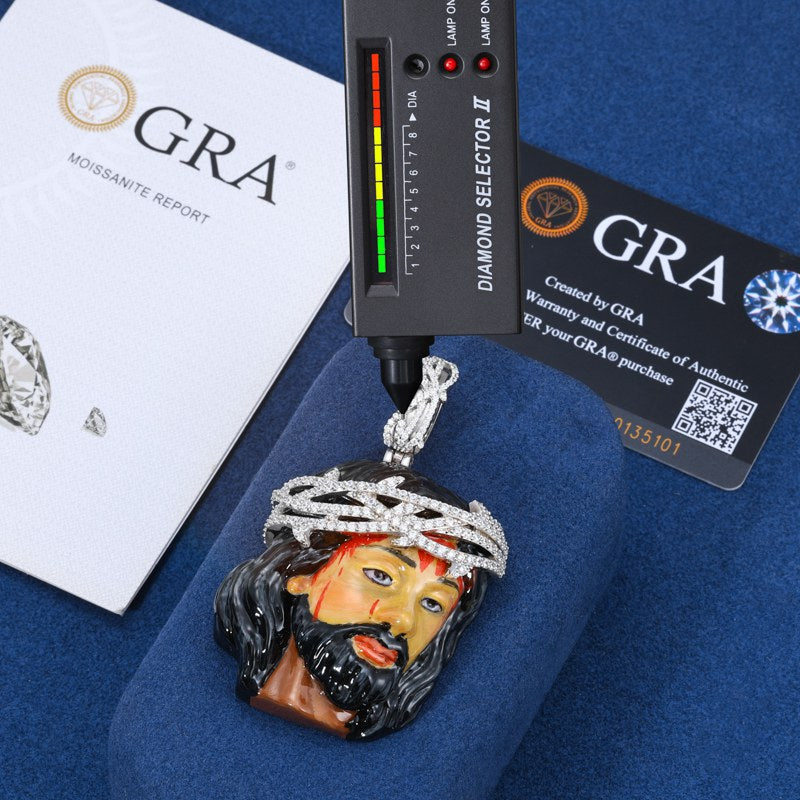 S925 Moissanite Enamel Jesus Head Pendant — Bold Faith, Iconic ShineMake a statement of devotion with the Noctari S925 Moissanite... Read more