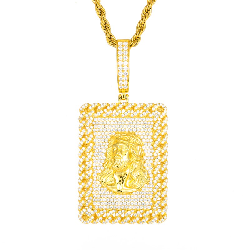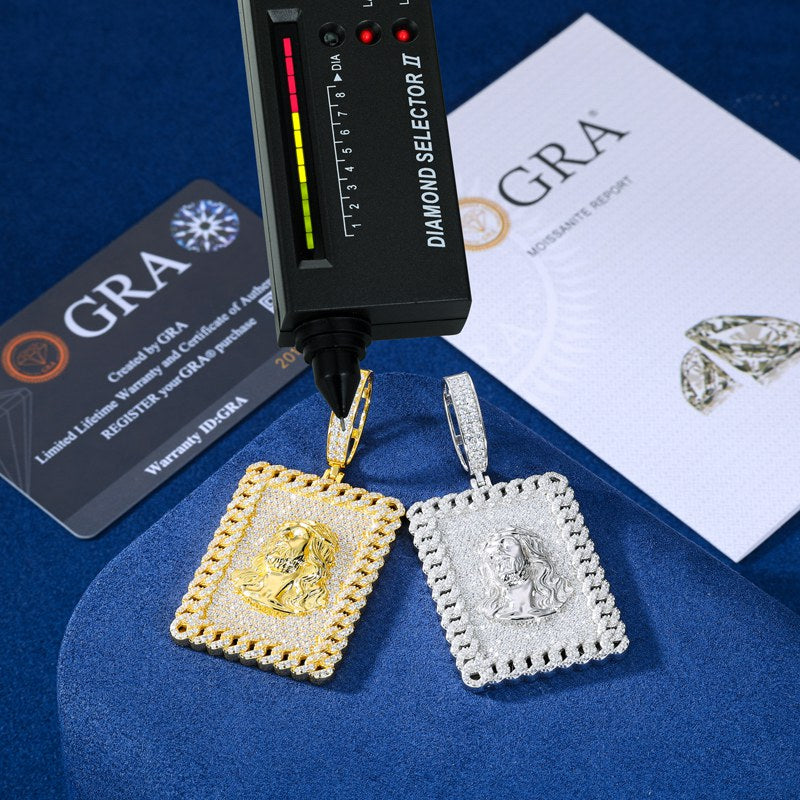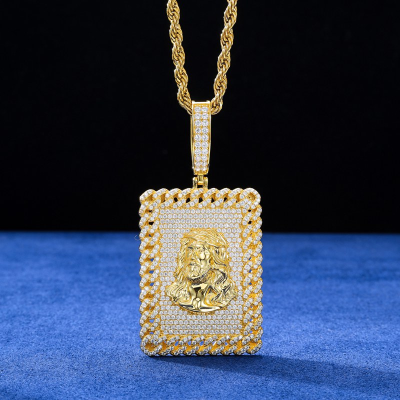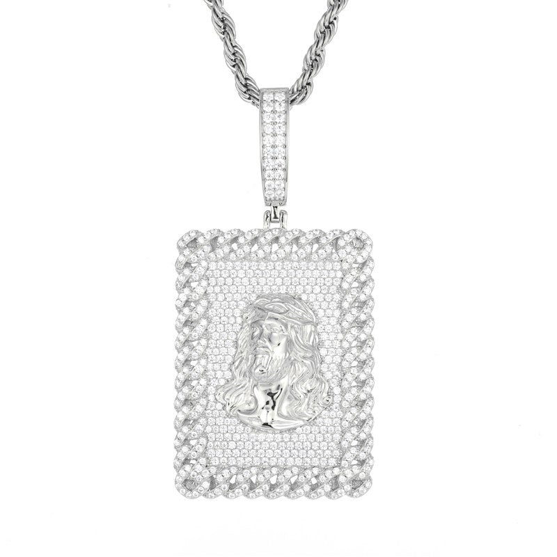 S925 Moissanite Jesus Head Dog Tag Pendant
