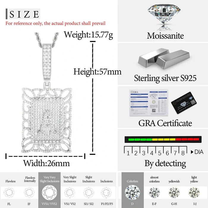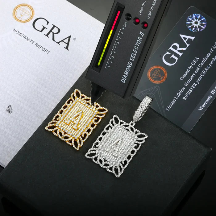 S925 Moissanite Letter A Square Dog Tag Pendant Sleek geometric lines meet precision gem setting for a bold customizable statement piecewhere individuality and luxury collide. Noctari style.