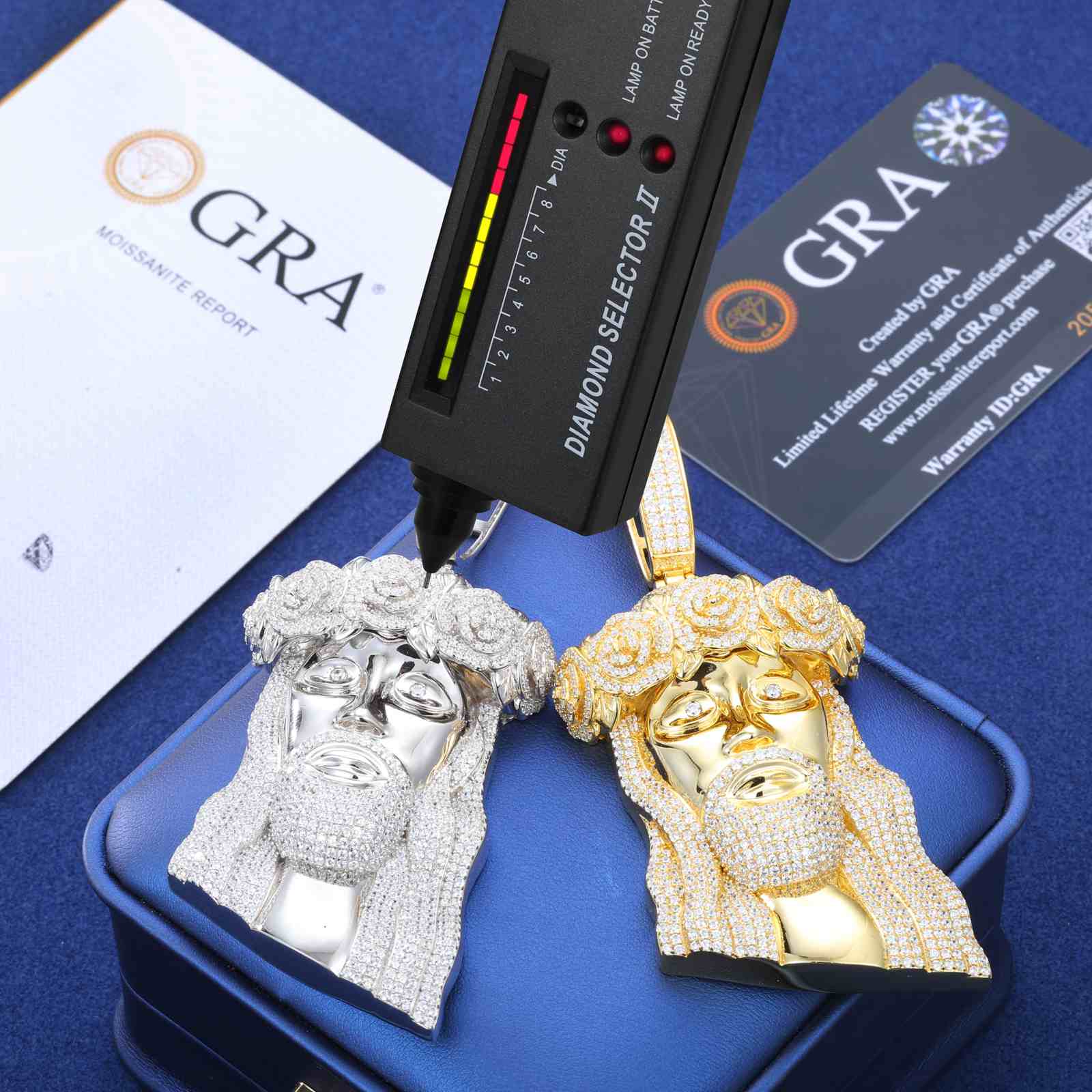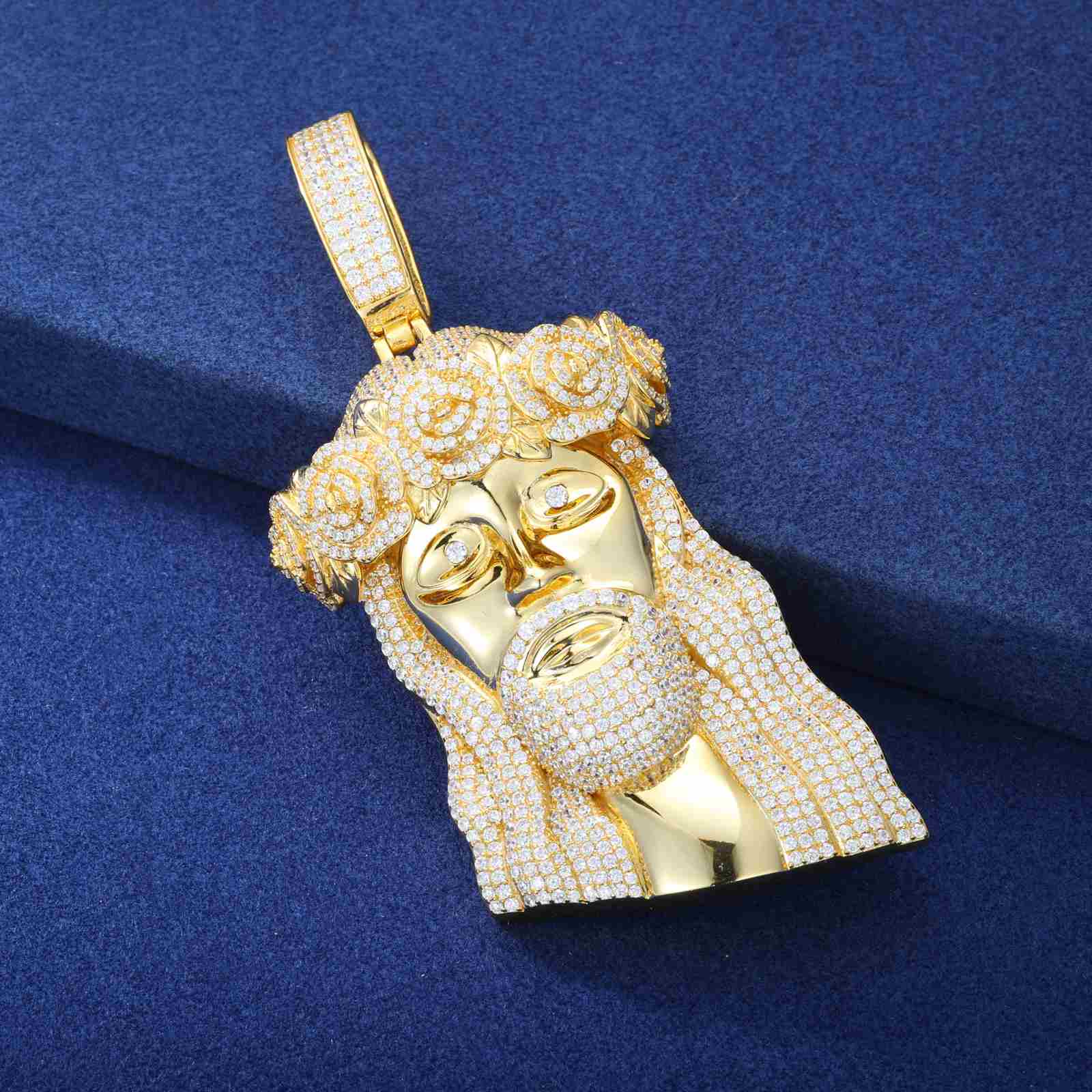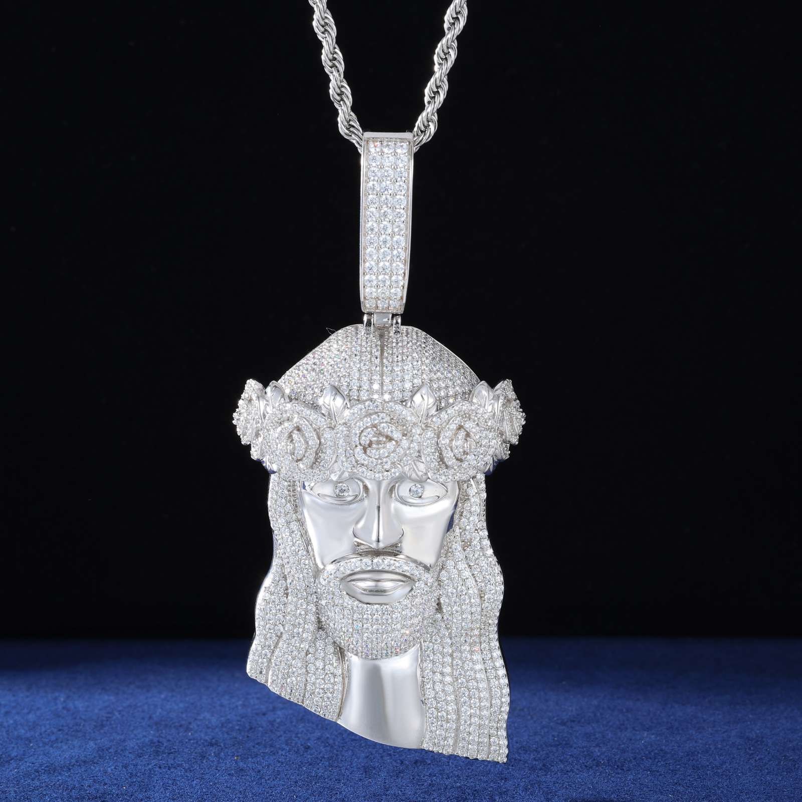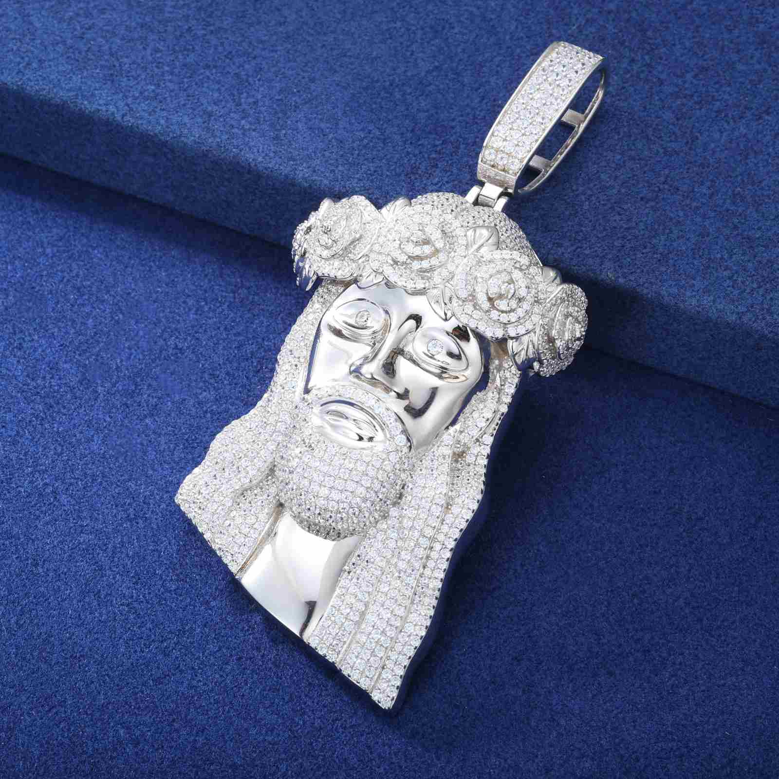 S925 Moissanite Rose Wreath Jesus Head Pendant