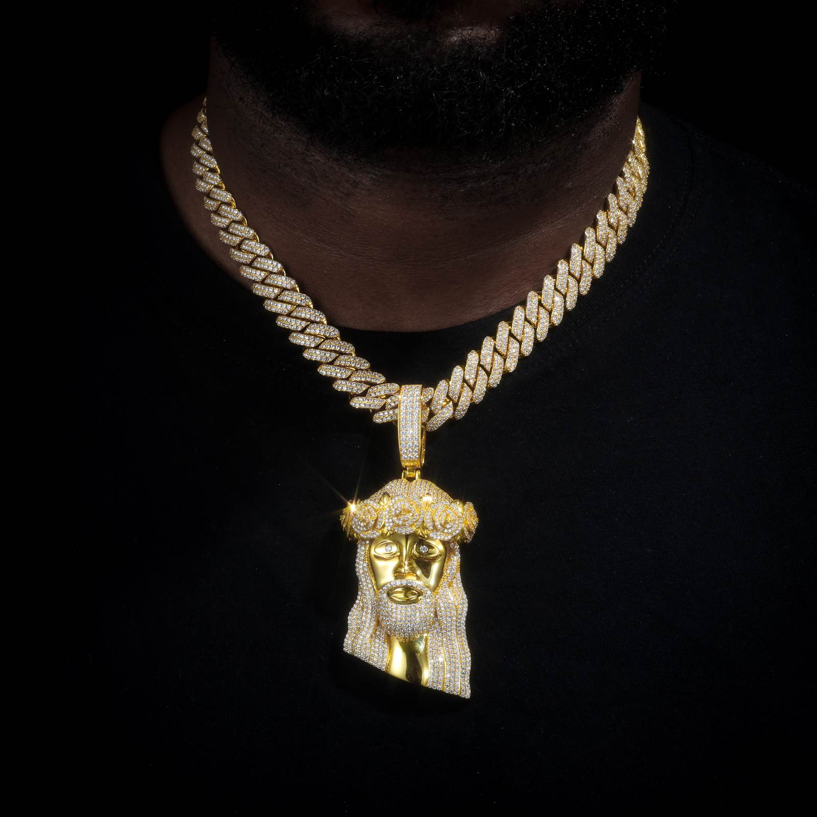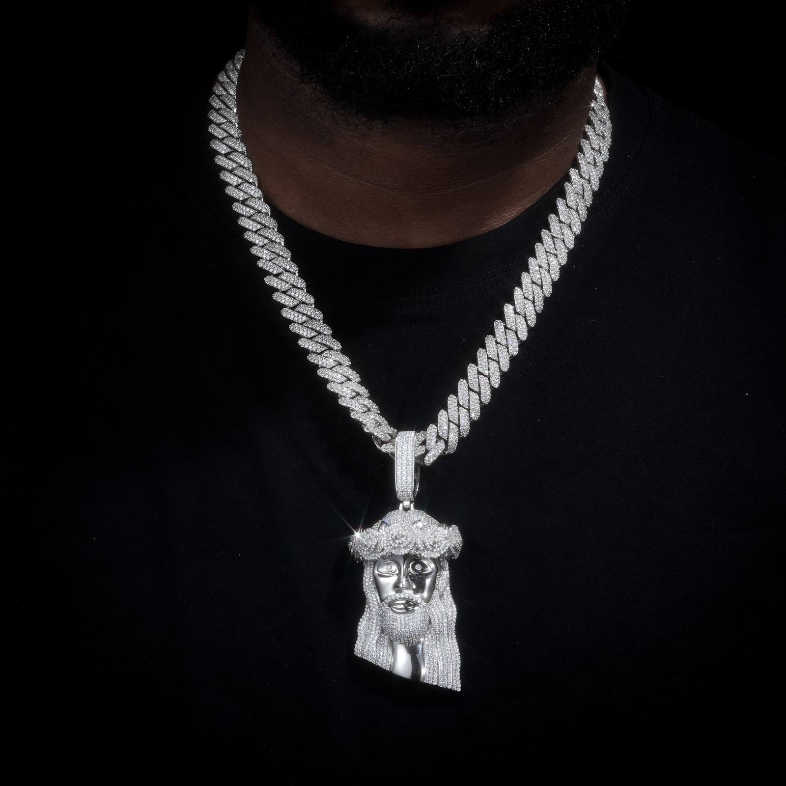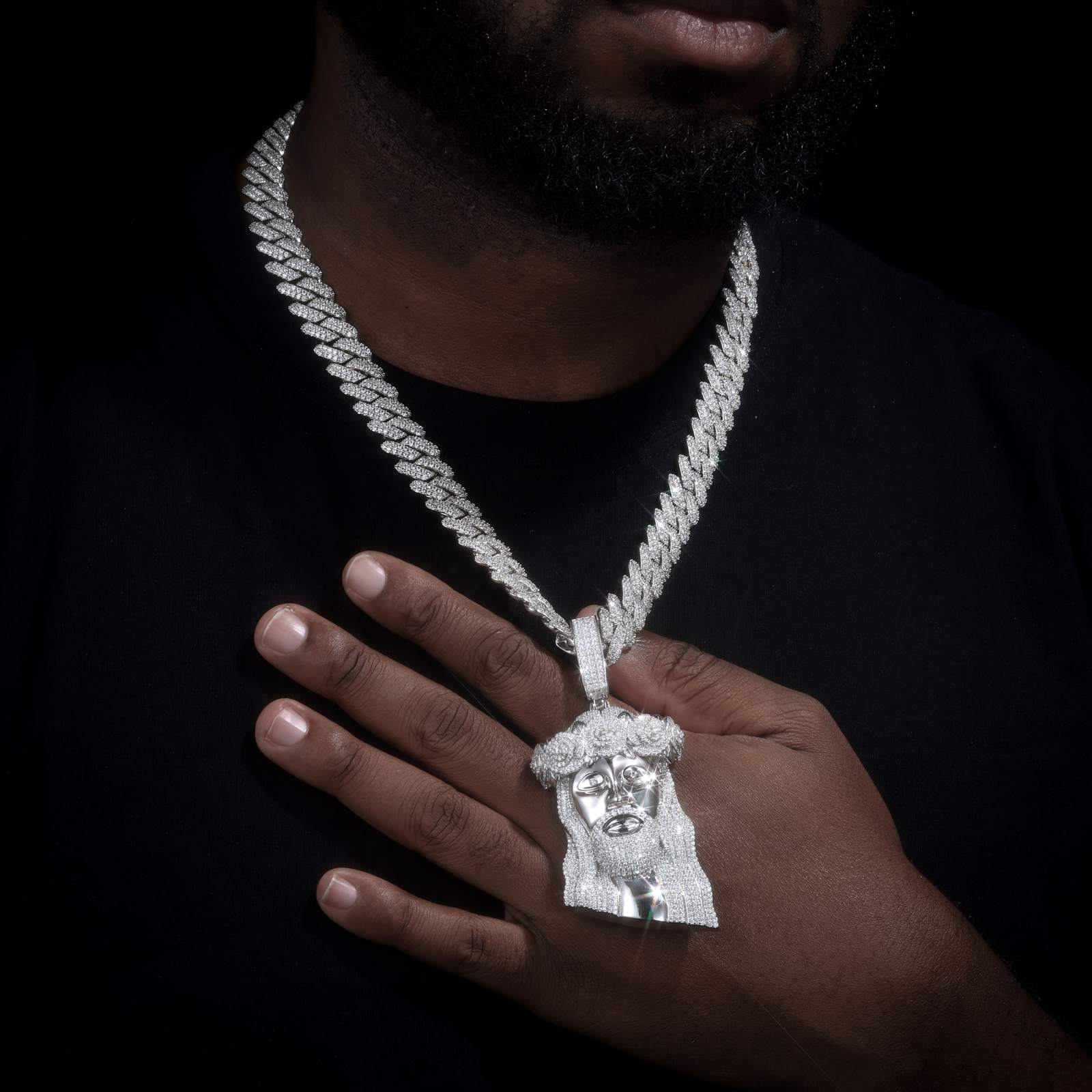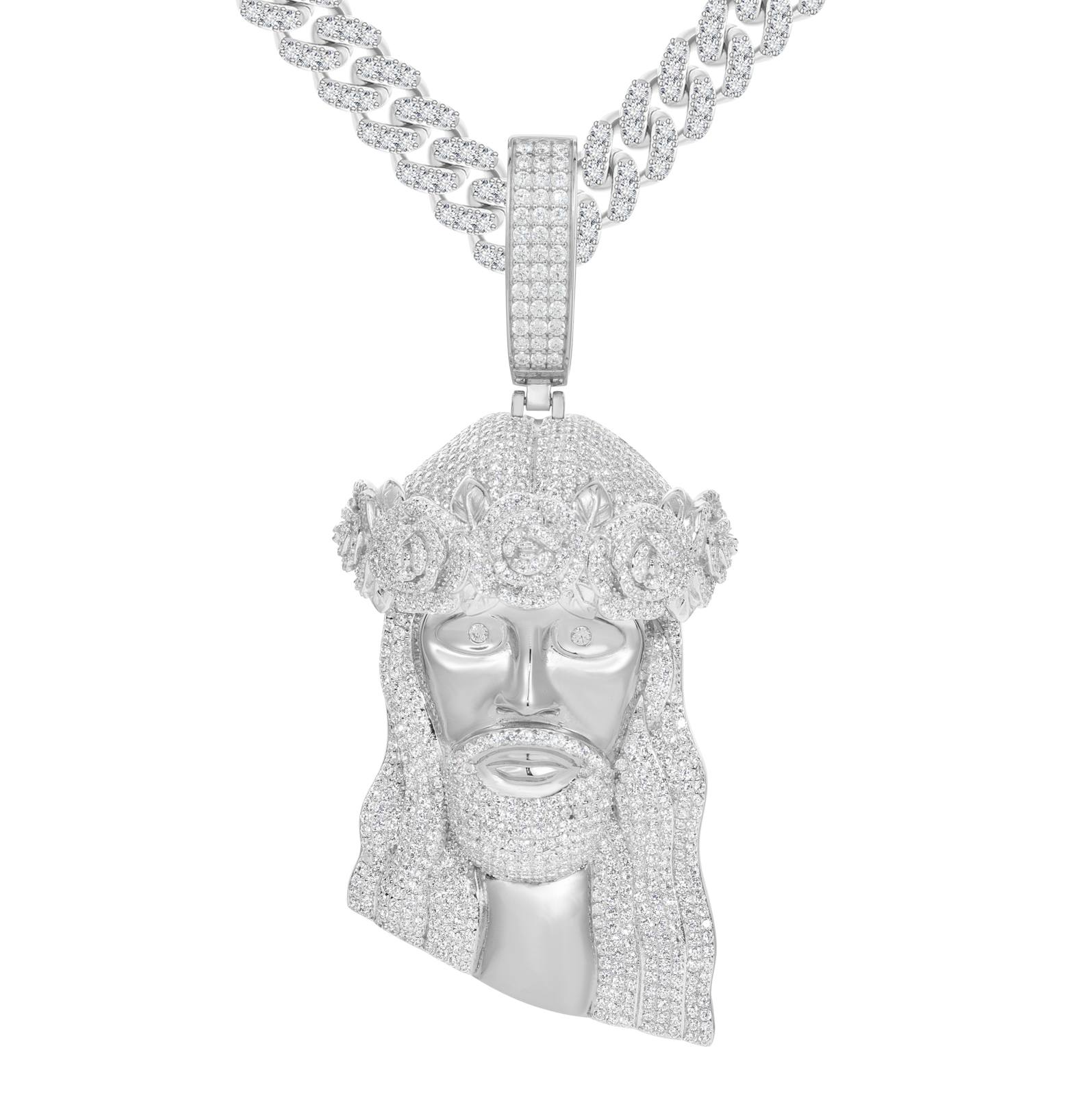 S925 Moissanite Rose Wreath Jesus Head Pendant