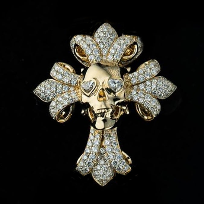 S925 Moissanite Skull Chrome Heart Cross Pendant