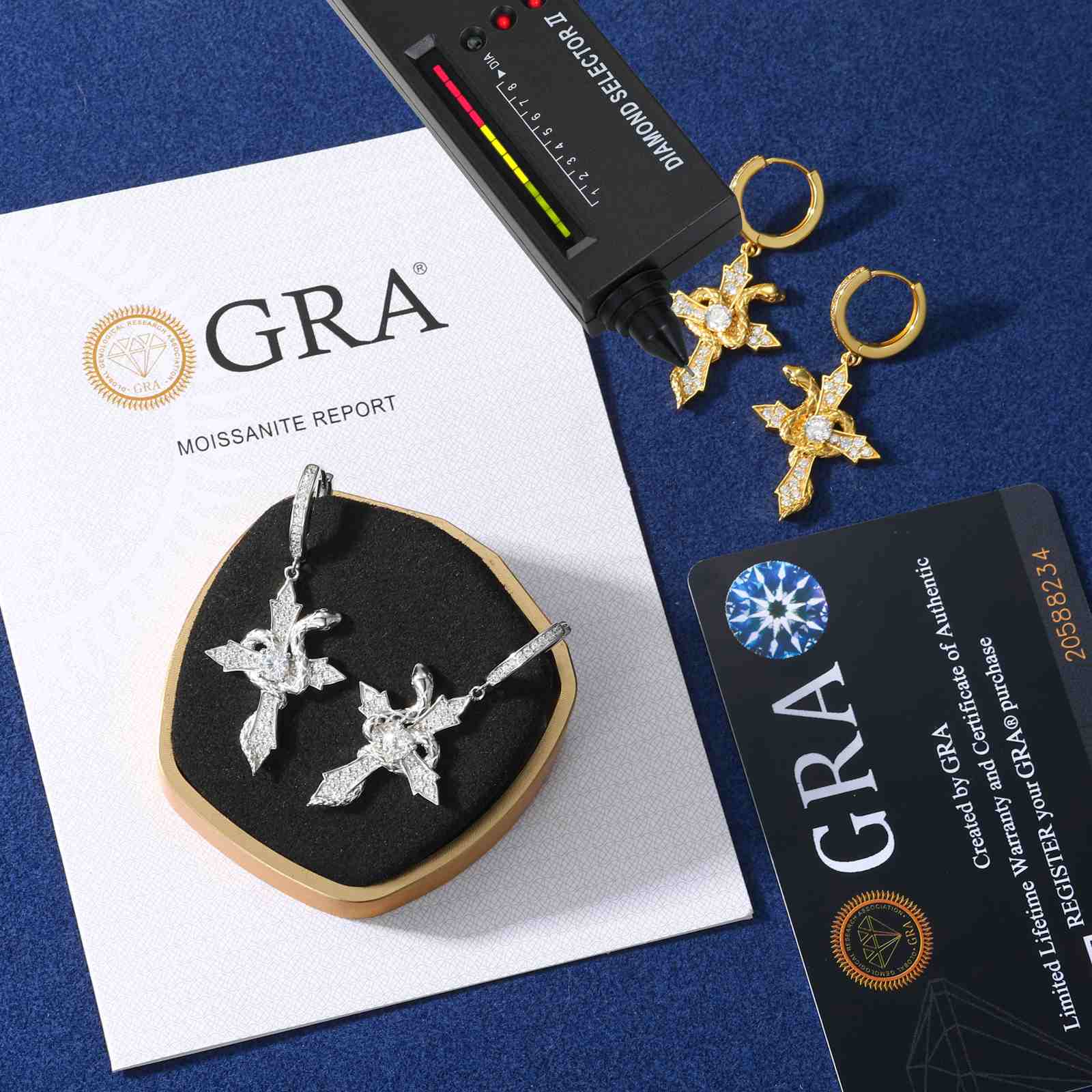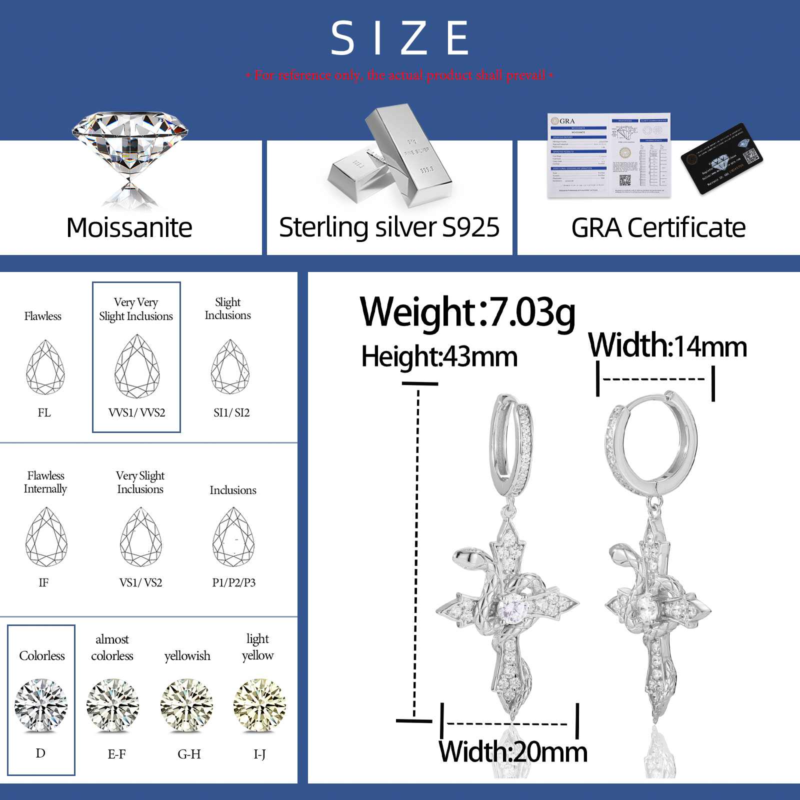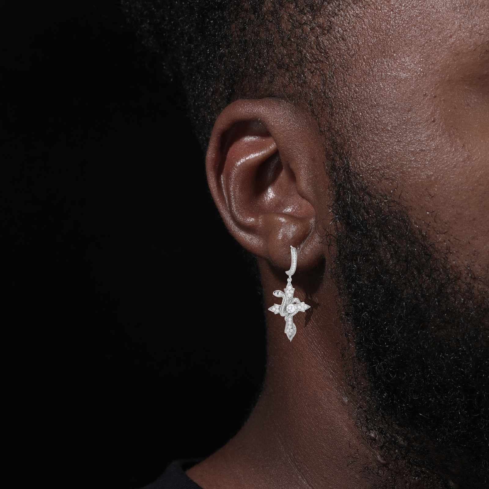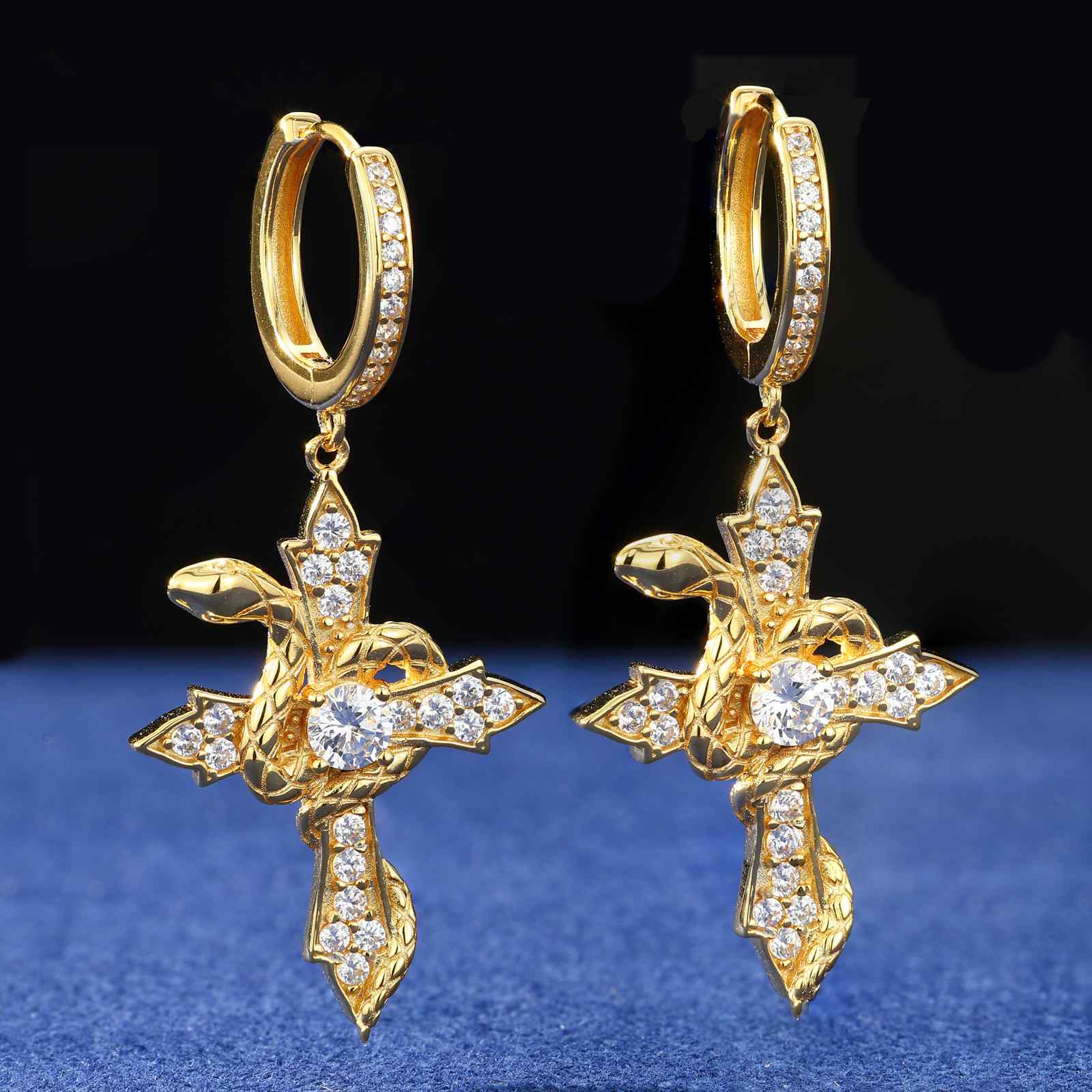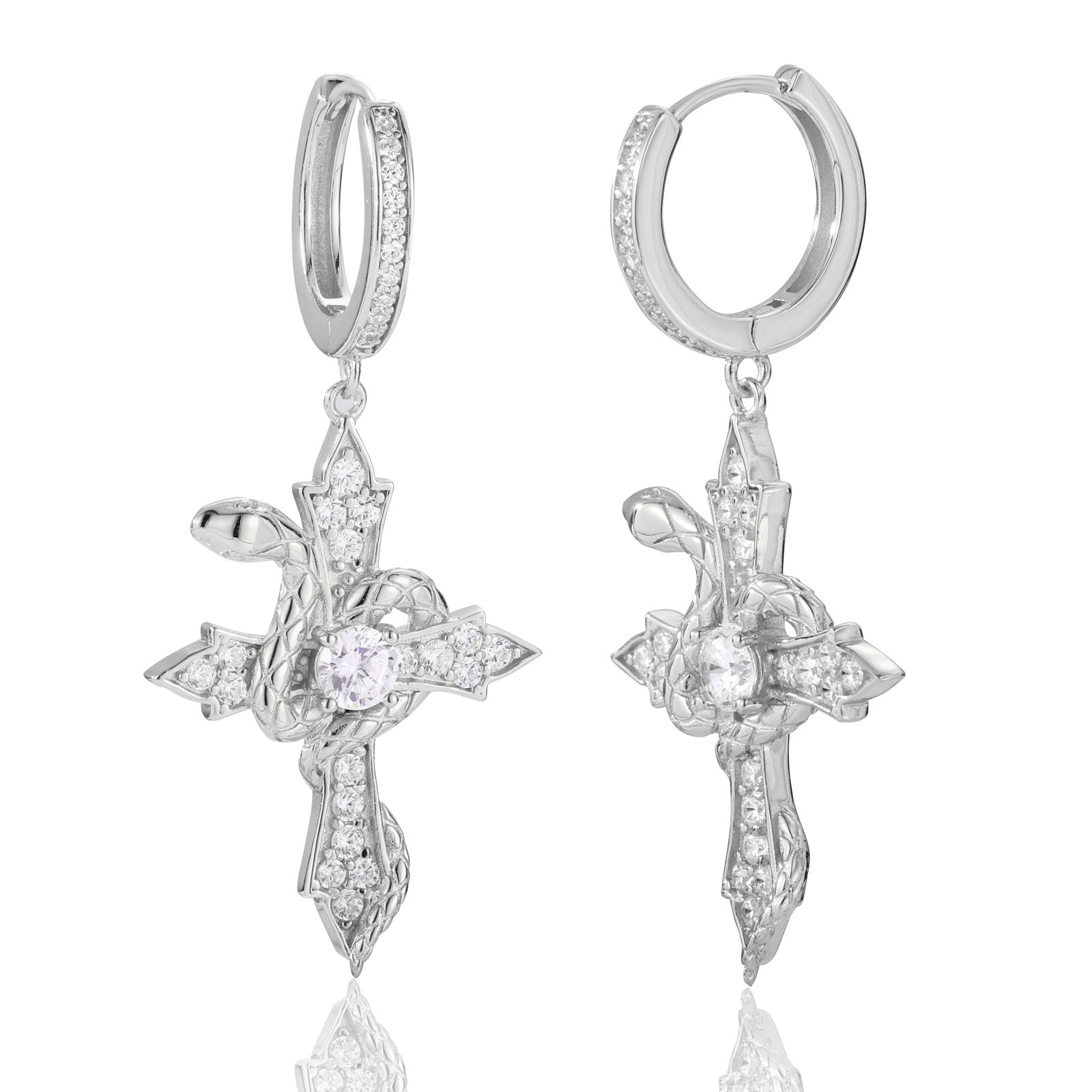 S925 Moissanite Snake Wrap Cross Drop Earrings