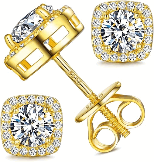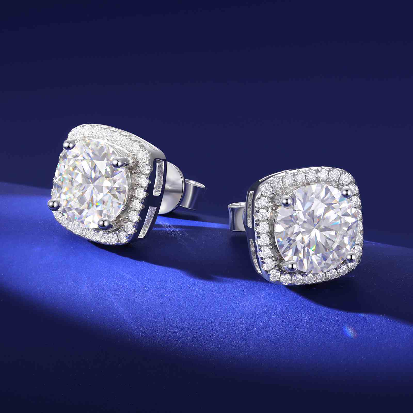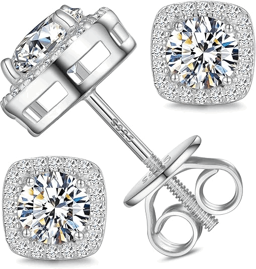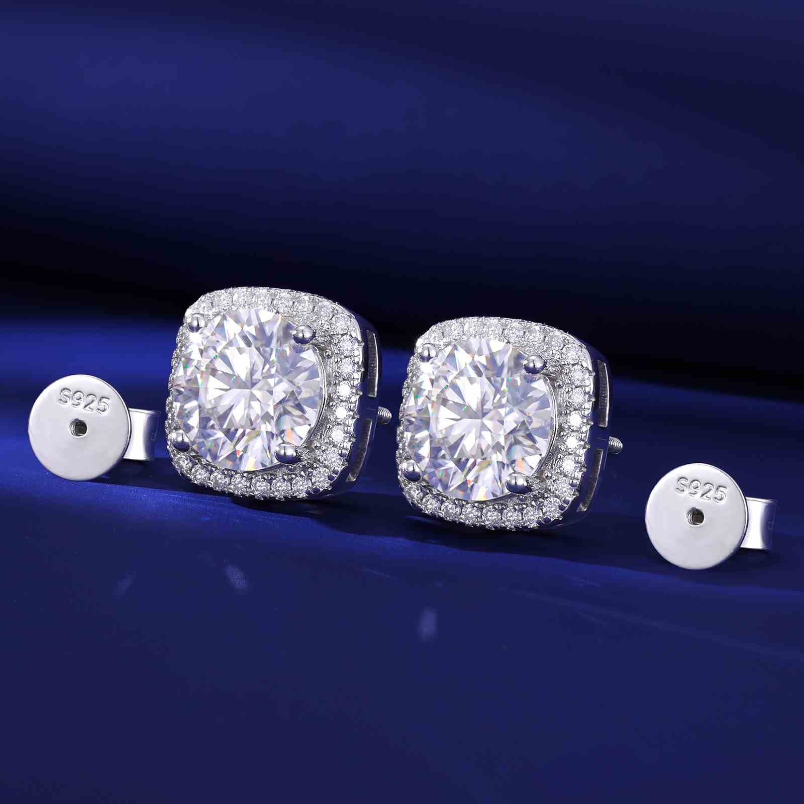 S925 Moissanite Square Halo Stud Earrings