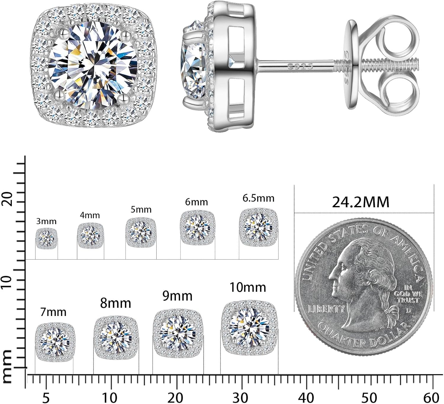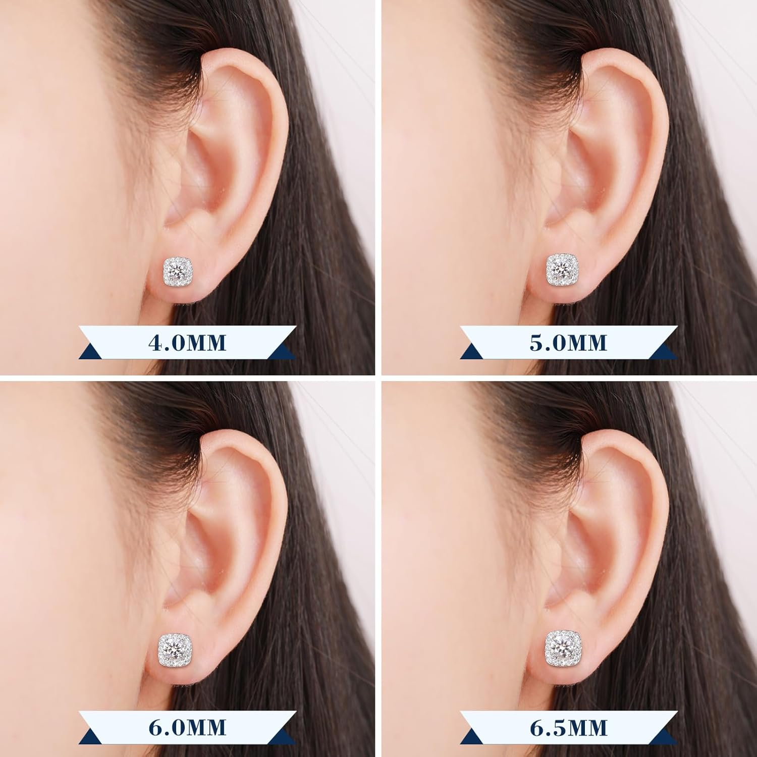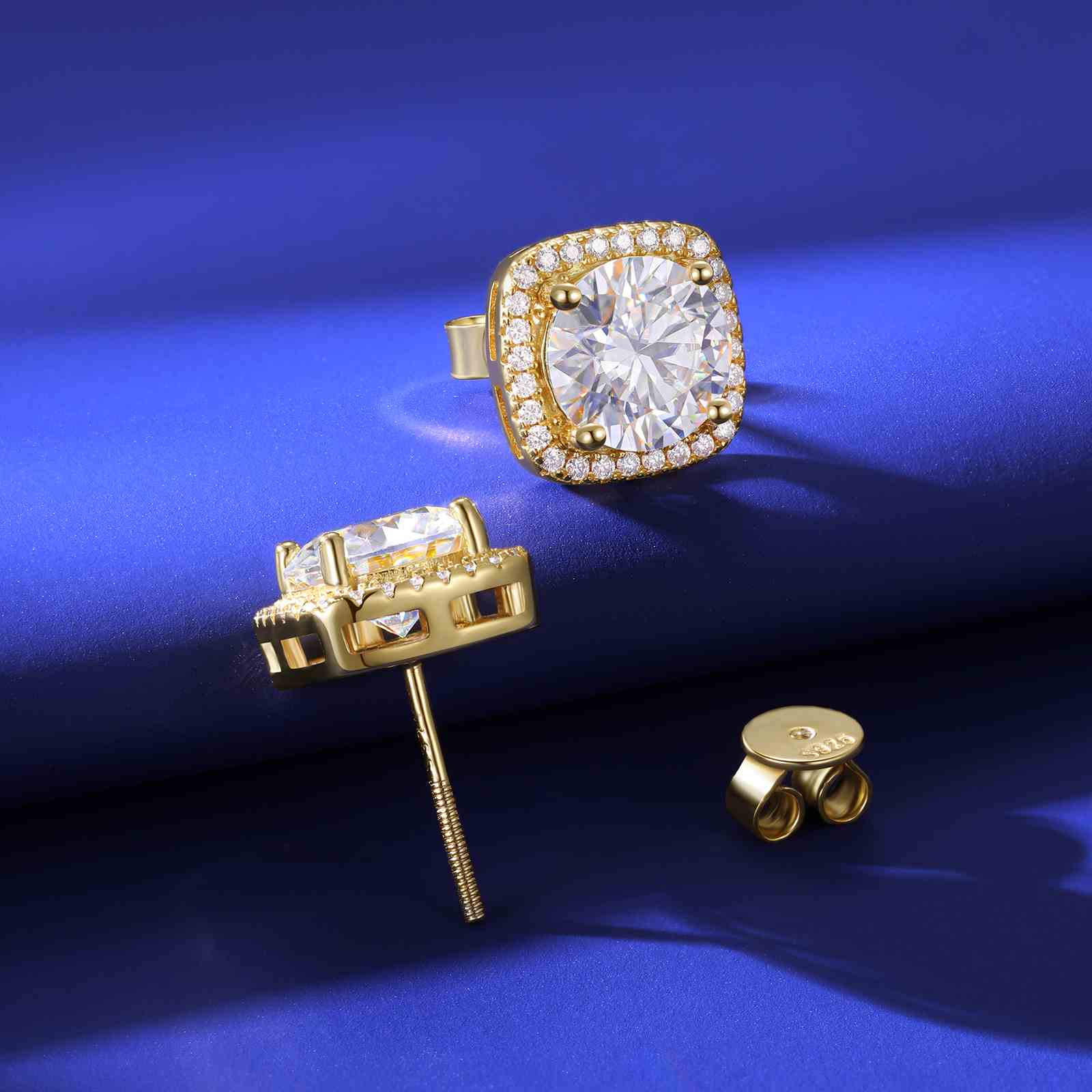 S925 Moissanite Square Halo Stud Earrings