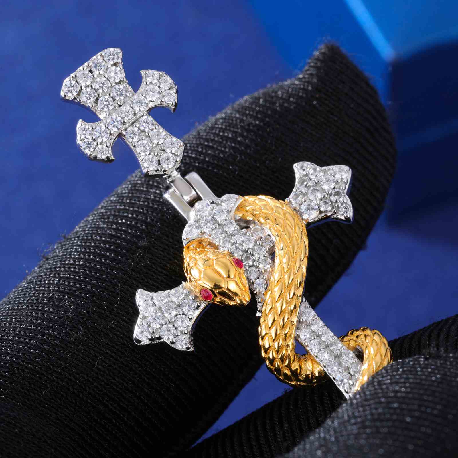 S925 Moissanite The Rod of Asclepius Cross Pendant