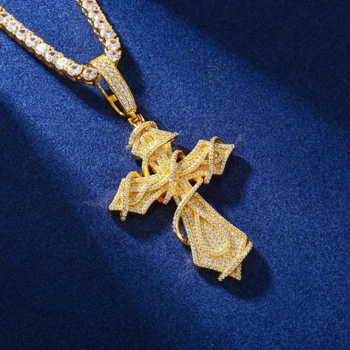 S925 Moissanite Thorns Cross Pendant