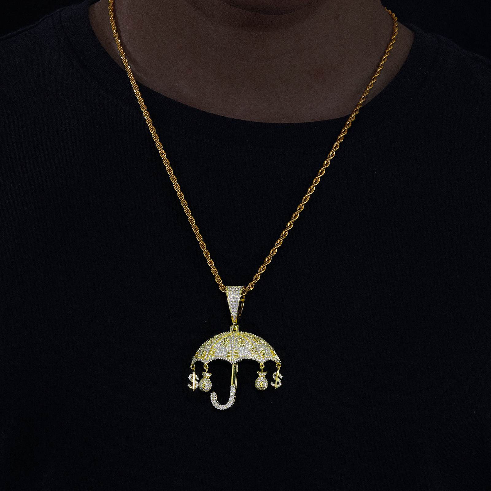 S925 Moissanite Umbrella Pendant With Money Bag and Dollar Charm