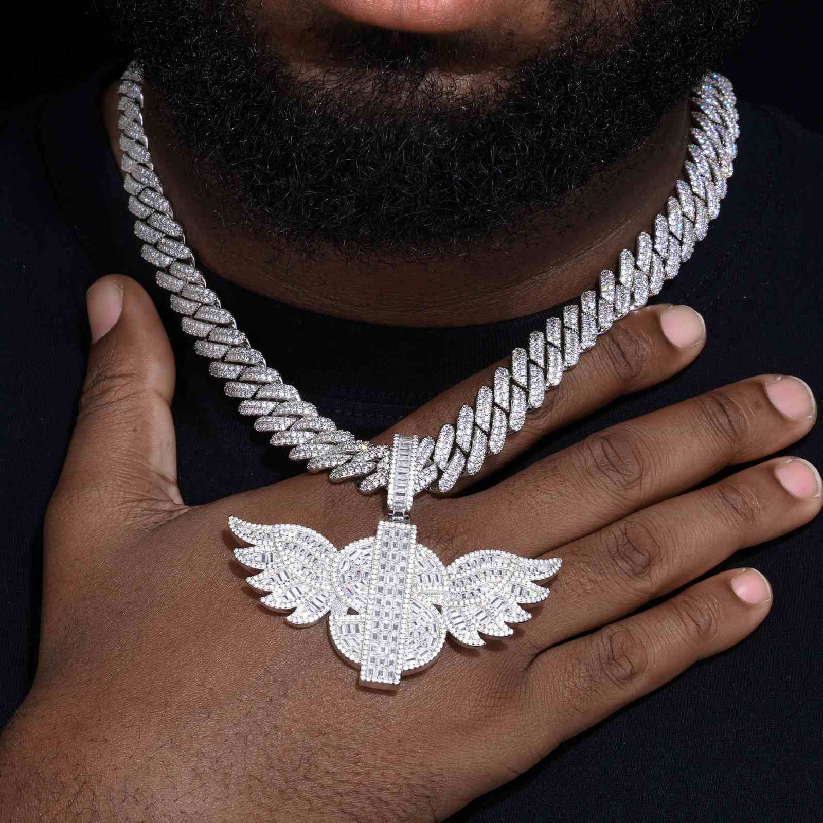 S925 Moissanite US Dollar Wing Pendant