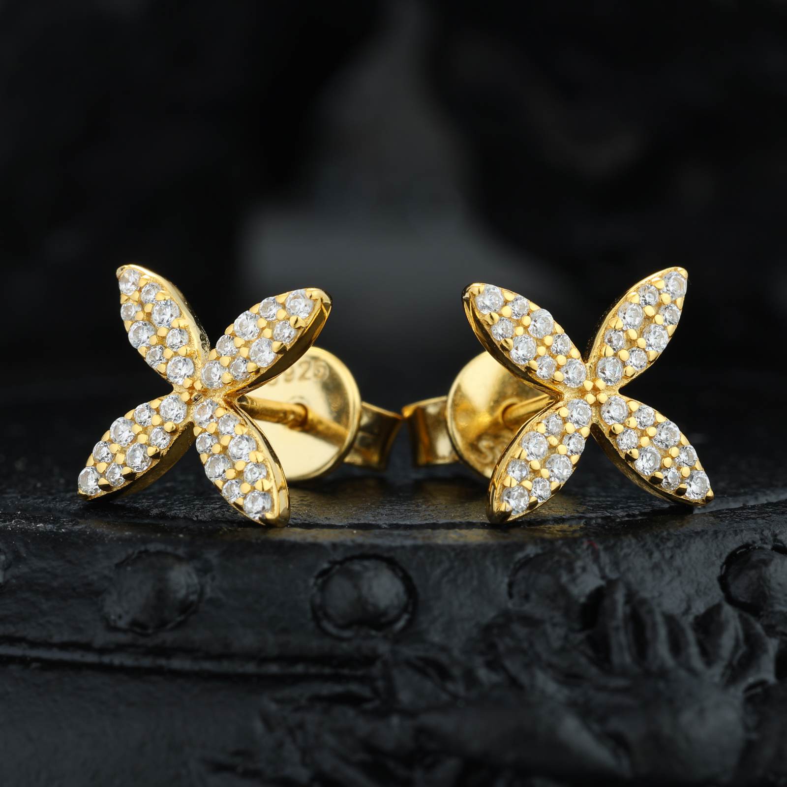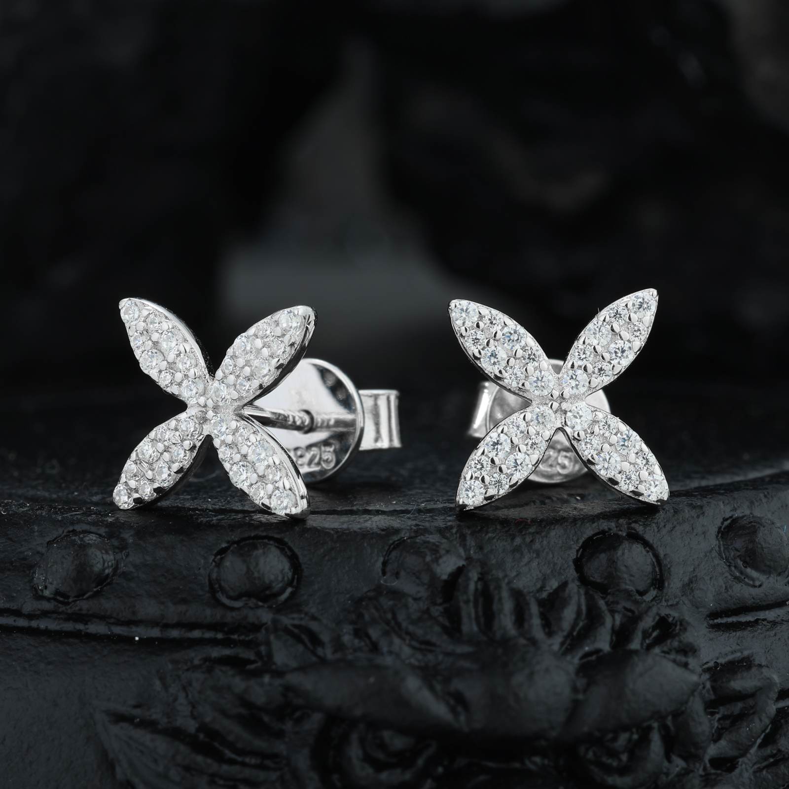 Elevate your everyday flex with these 925 sterling silver stud earrings, featuring a bold four-leaf clover design iced with D... Read more