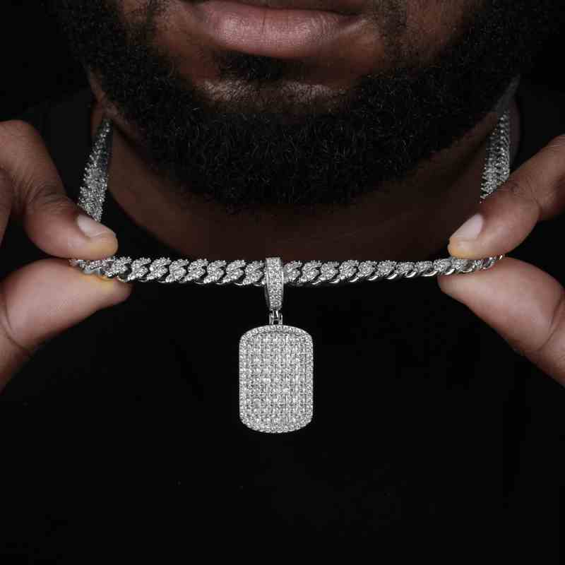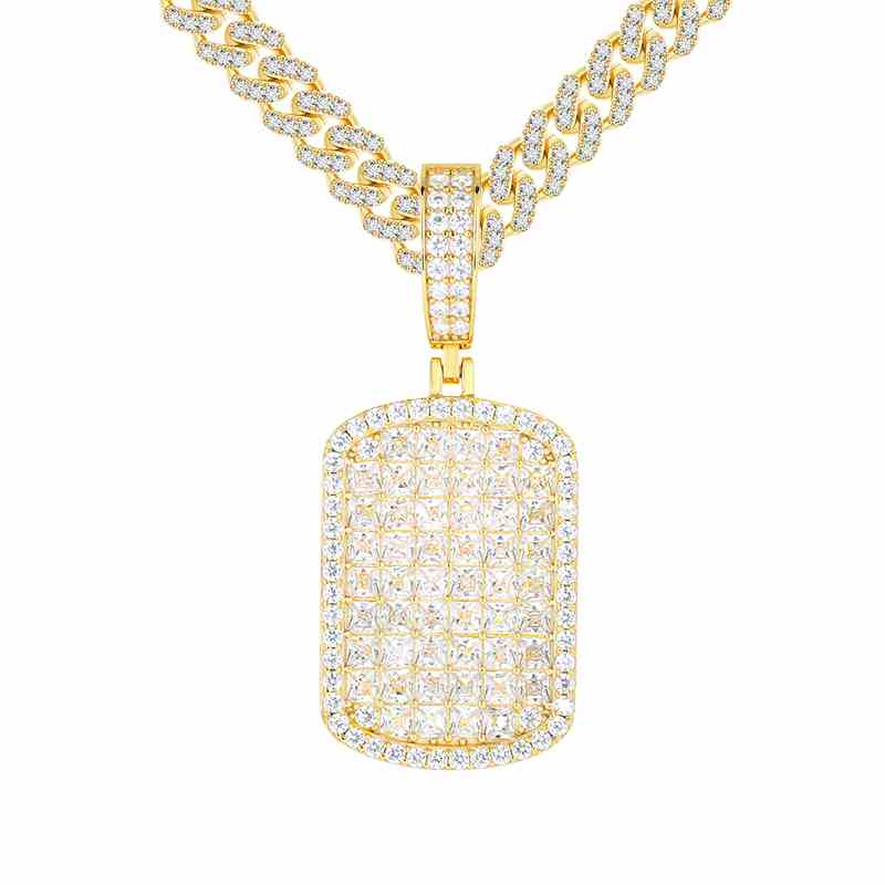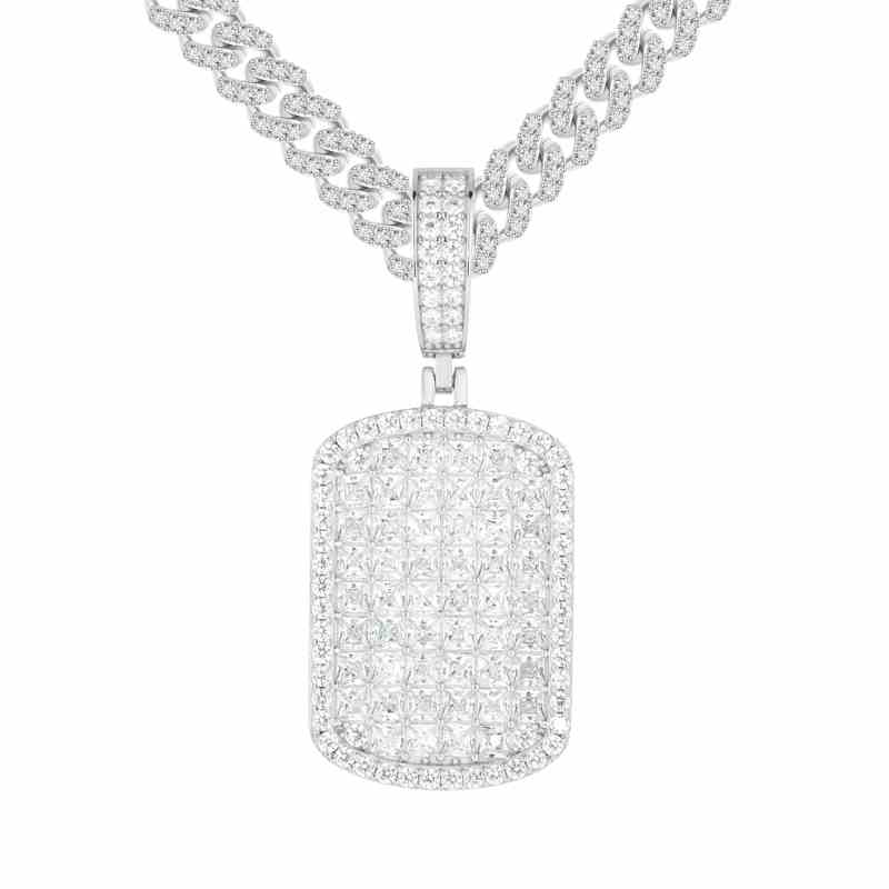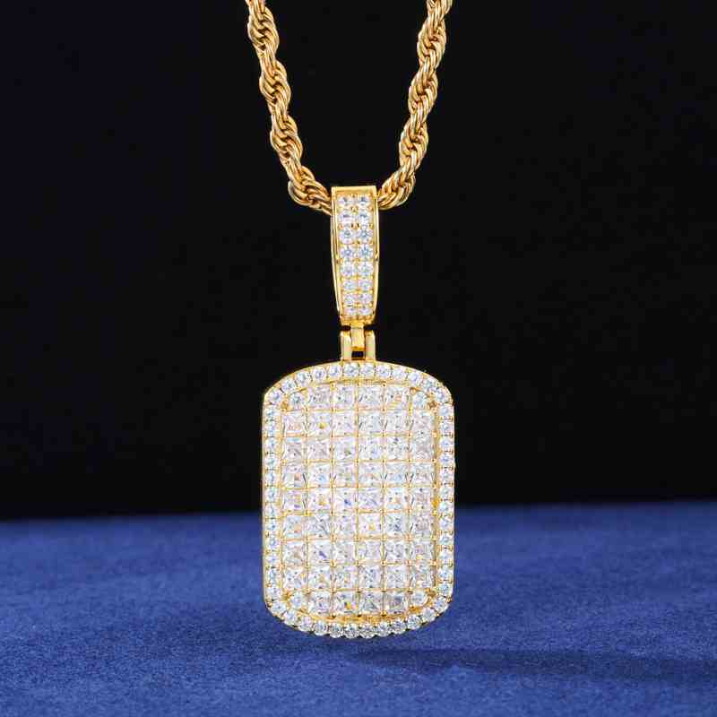 S925 Princess Cut Moissanite Dog Tag Pendant